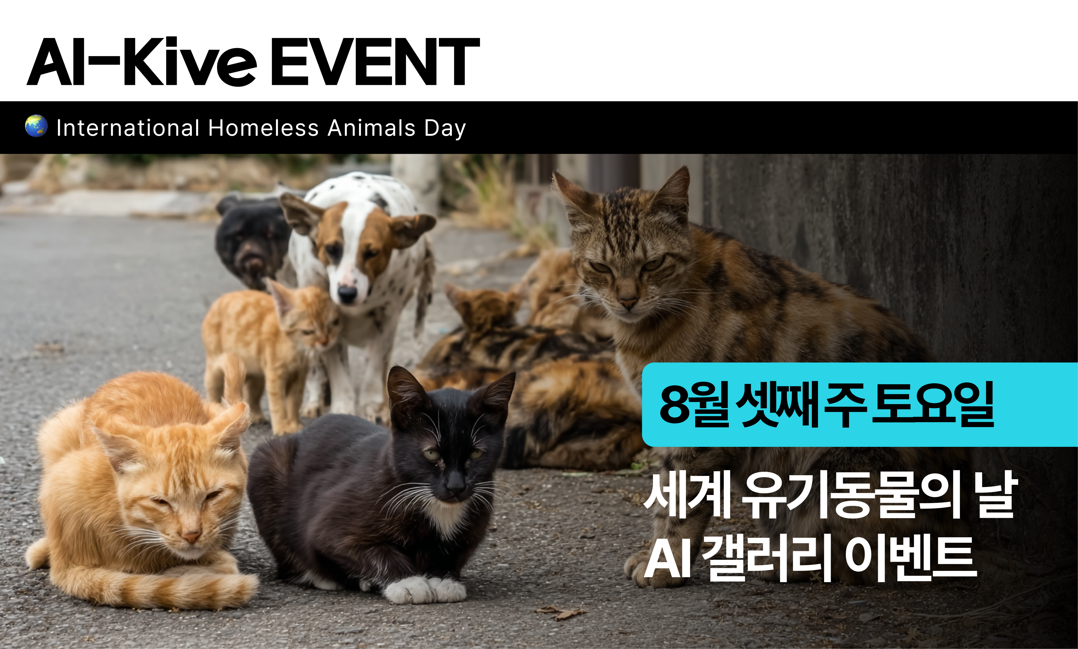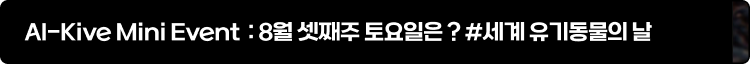 매년 8월 셋째주 토요일, 세계유기동물의 날을 맞아 AI-Kive 에서 작은 이벤트를 진행했습니다. 어떤 작품들이 출품되었을지 확인해보세요! AI-Kive에서 열리는 크고 작은 이벤트들을 앞으로도 기대해주세요. 🎊